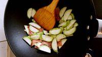 7.培根炒香后加入丝瓜