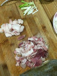 4.五花肉洗净切片,用的是土猪肉,会比较香哦