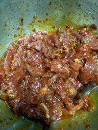 6.将牛肉拌匀调料腌制半小时。
