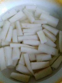 9.先大火烧开在中火熬出香味大概二十分钟放入山药条熬