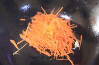 10.锅中倒入少许底油,油不用太多,保证不糊锅即可。再下入蒜片,爆出香味后,下入胡萝卜翻炒均匀。