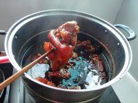 8.把卤好的猪蹄在卤汤中浸泡4小时,让它更入味上色。